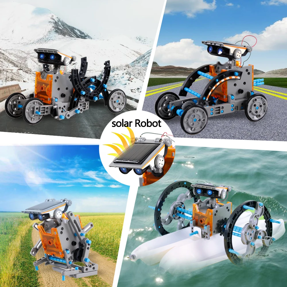 1. 12 различных форм Может быть адаптирован к водным и наземным движениям, подходит для больших возрастных пролетов, это лучшее время для сопровождения ваших детей. 2. Самостоятельное производство: Улучшайте воображение и творческие способности детей, и пусть дети учатся знаниям через игры и игры. 3. Аккумулятор не требуется В комплект входит солнечная панель. Панель может собрать солнечную энергию, а затем применить его к двигателю, чтобы сделать продукт двигаться. 4. Обучение STEM: Продукт объединяет науку, технологии, технику, математику в одном, улучшает практические способности детей и логическое мышление, а затем понимает важность командной работы. 5. Хороший подарок Изготовлен из нетоксичного, безвредного и без запаха АБС-материала, позволяет детям получать удовольствие от возобновляемой энергии.