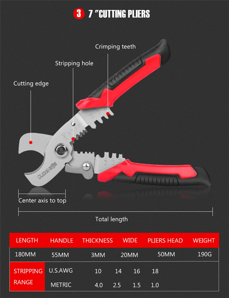 Набор плоскогубцев QUK, Мультитул, инструмент для зачистки проводов, обжимные плоскогубцы, обжимной инструмент, обжимной инструмент, инструмент для резки и зачистки электриков, ручные инструменты