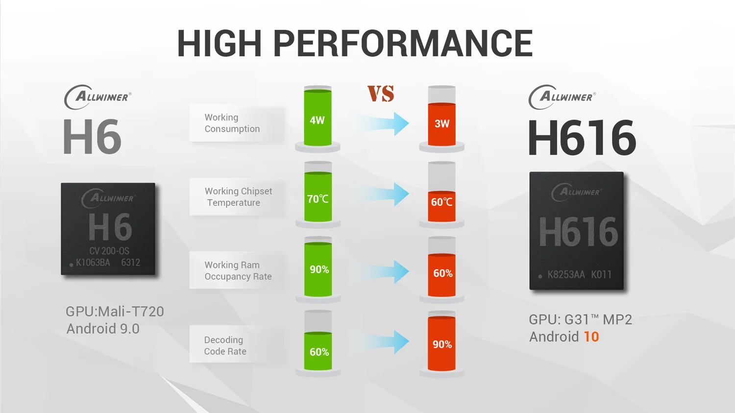 Процессор: Allwinner H616 64-разрядный четырехъядерный процессор ARM? Процессор Cortex A53 GPU: G31 MP2 GPU процессор Память DDR: 2 ГБ/4 ГБ Вспышка: eMMC:8G/32GB/64GB WiFi: IEEE 802,11 a/b/g/n/ac; 2,4G / 5G 2G 8G только поддержка 2,4 GHz WiFi,32G/64G Поддержка 2,4G + 5G WIFI Bluetooth: BT; Поддержка голосового пульта Коврик: пластик: черный цвет I/O 1 * HDMI: HDMI 2,1, поддержка HDMI CEC, динамический HDR и выход 8K x 4K @ 24 max 1 * Выход AV: выход стандарта 480i/576i 3 * USB: 3 * USB 2,0 1 * ИК-ресивер: удаленный ресивер 1 * RJ45: Ethernet Интерфейс Поддержка 10/100 м 1 * TF карта: поддержка 4 ГБ/8 ГБ/16 ГБ/32 ГБ/64 ГБ Мощность: 5 В/2 а постоянного тока Программное обеспечение ОС: Android 10,0 Видео Видео двигатель (AVE) с выделенными аппаратными декодерами и кодеры Поддержка мульти-видео декодера до 4x1080P @ 60fps Поддерживает несколько «защищенных» сеансов декодирования видео и одновременное декодирование и кодирование Декодирование видео/изображений -Профиль VP9-2 до 8K x 4K @ 24 fps -H.265 HEVC MP-10@L5.1 до 8K x 4K @ 24 fps -AVS2-P2 профиль до 8K x 4K @ 24 fps -H.264 AVC HP@L5.1 до 4K x 2K @ 30 кадров в секунду -MPEG-4 ASP @ L5 до 1080P @ 60fps (ISO-14496) -WMV/VC-1 SP/MP/AP до 1080P @ 60fps -AVS-P16(AVS +) /AVS-P2 JiZhun профиль до 1080P @ 60fps -MPEG-2 MP/HL до 1080P @ 60fps (ISO-13818) -MPEG-1 MP/HL до 1080P @ 60fps (ISO-11172) -RealVideo 8/9/10 до 1080P @ 60fps -Поддержка нескольких языков и нескольких форматов -MJPEG и JPEG неограниченное разрешение пикселей декодирование (ISO/IEC-10918) -Поддержка JPEG thumbnail, масштабирование, вращение и эффекты перехода -Поддерживает *. МкВ, *.wmv,*.mpg, *.mpeg, *.dat, *.avi, *.mov, *.iso, *.mp4, *.rm и *. Форматы файлов jpg Аудио Поддерживает MP3, AAC, WMA, RM, FLAC, Ogg и программируемый с 7,1/5,1 вниз-смешивание Низкомощный VAD Встроенный Серийный Цифровой аудио SPDIF/IEC958 вход/выход и PCM вход/выход 3 встроенных порта TDM/PCM/I2S с режимом TDM/PCM до 384 кГц x 32 бит x 16 каналов или 96 кГц x 32 бит x 32 канала и I2S режим до 384 кГц x 32 бит x 16 каналов Цифровой микрофон PDM вход с программируемым CIC, LPF и HPF, поддержка до 8 микрофонов Встроенный стерео аудио ЦАП Поддерживает одновременный двойной аудио стерео выход канала с сочетанием аналогового + PCM или I2S + PCM Изображение: HD JPEG, BMP, GIF, PNG, TIF Язык: Английский Французский Немецкий Испанский итальянский и т. Д. Применение: Онлайн: просмотр всех видео веб-сайтов, поддержка Netflix,Hulu,Flixster, Youtube и т. Д. Приложения: приложения скачать свободно формируют android market, amazon app store и т. Д. Средний: воспроизведение локальных медиа, Поддержка HDD, U Disck, tf-карта. Онлайн-разговор: Поддержка SKYPE видеовызова, MSN , facebook ,twitter ,QQ и т. Д. Другие Поддержка электронной почты, офисный костюм и т. Д. Поддержка функции DLNA Поддержка беспроводной мыши/клавиатуры 2,4G Посылка включает: 1 * ТВ-бокс 1 * HDMI кабель 1 * ИК-пульт 1 * Руководство пользователя 1 * коробка для посылка 1 * Адаптер питания