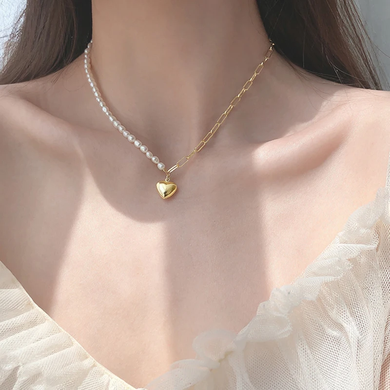 Особенности: маленькие ожерелья с большими цепочками в виде цветка, Бусы из натурального пресноводного жемчуга, ожерелья с застежкой в виде сердца