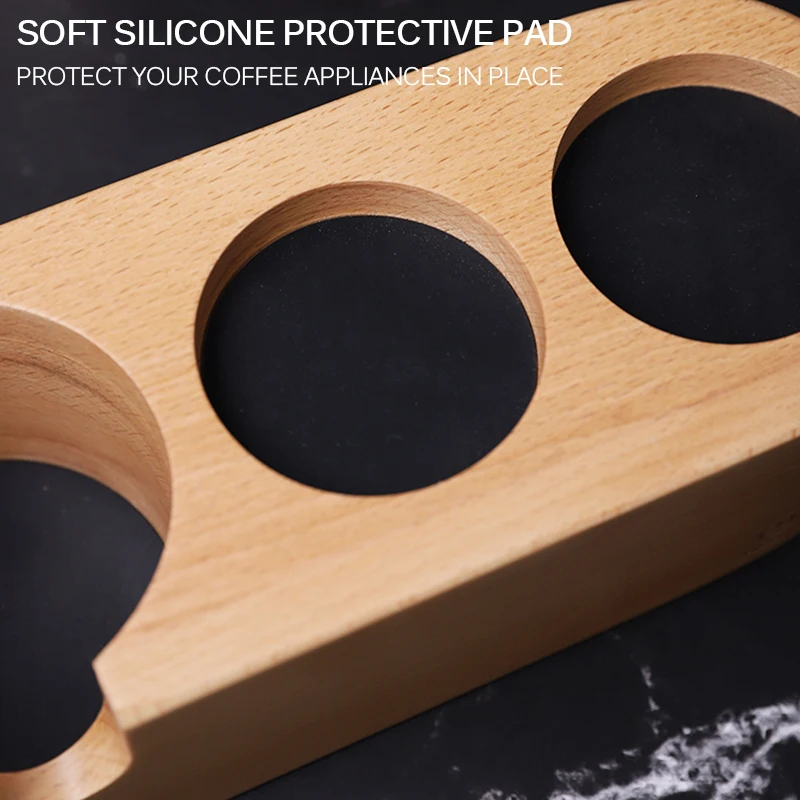Держатель фильтра для кофе имеет три отверстия. Каждое отверстие прилагается с силиконовой прокладкой для защиты набора трамбовки кофейного порошка от царапин.