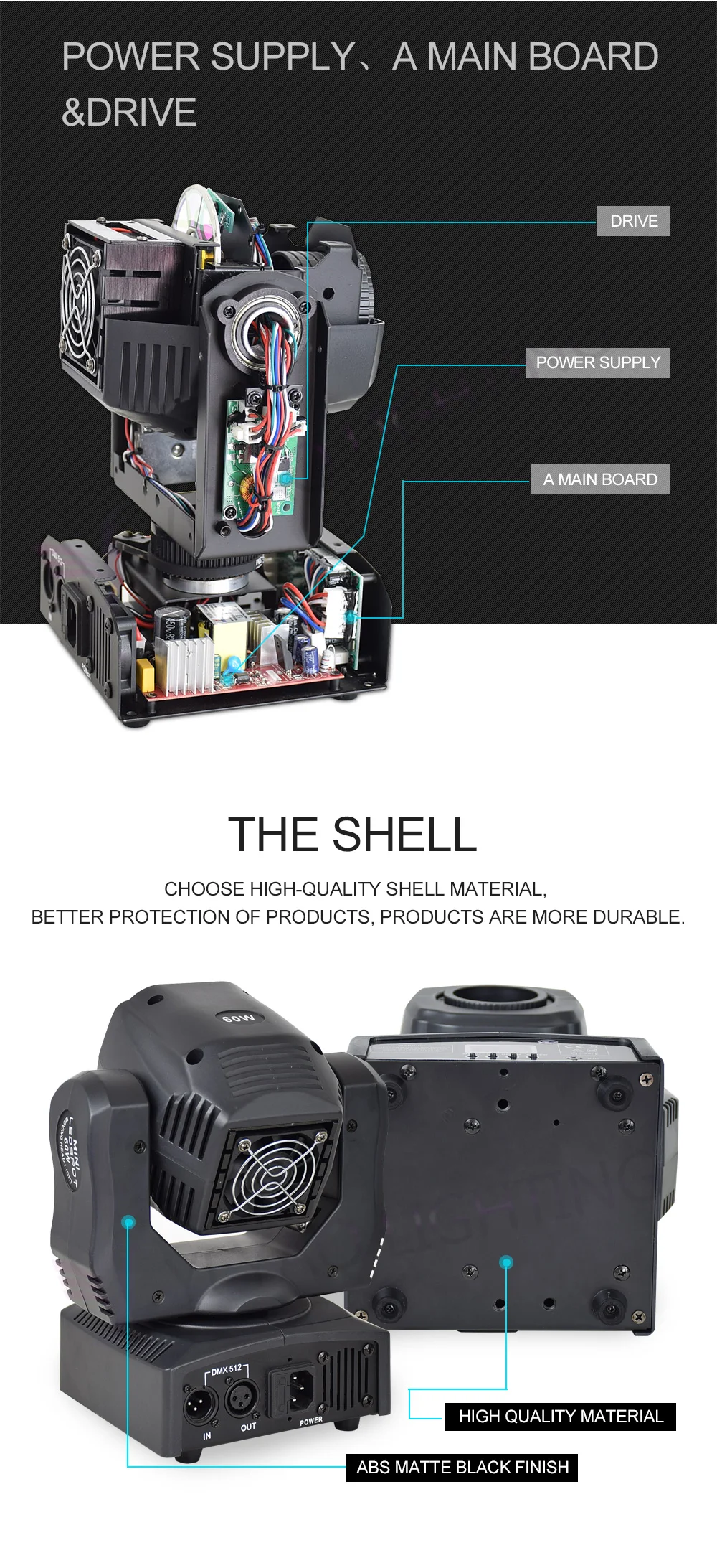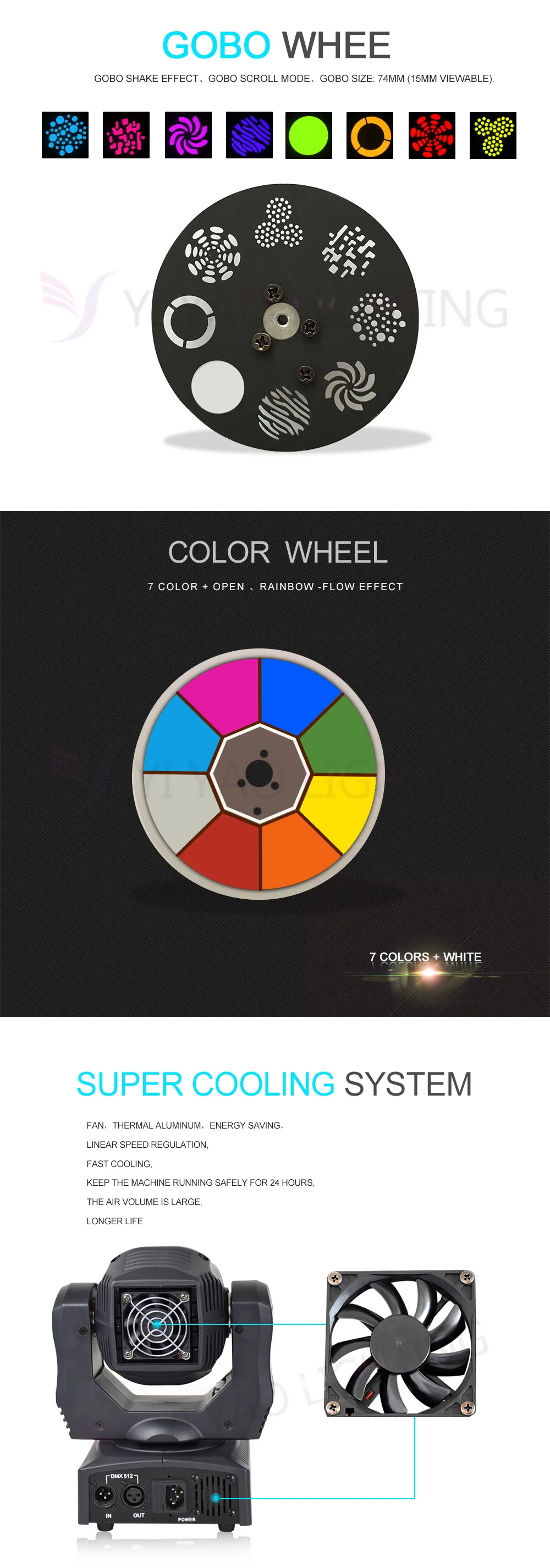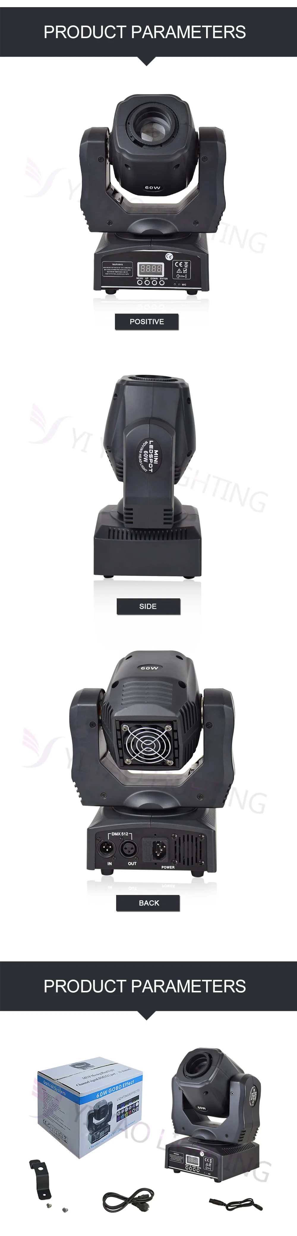 Характеристики продукта: * Входное напряжение: AC90--240V,50-60 Гц * Общая мощность: 90 Вт * Светодиодный источник: 60 Вт белый светодиодный высокое Мощность светодиодный s 60000 часов * DMX-Каналы управления: 9/11 DMX каналов * Цвета: 7 цветов + белый * Диммер: 0-100% механический диммер * Цветовое колесо: 8 цветов цвет s + половинный эффект цвета + скорость вращения цвета. Бесконечное вращение Колесо Gobo: 8 gobos + shake + скорость вращения Gobo. Бесконечное вращение * Фокус: ручной фокус * Режимы работы: DMX512, автоматический запуск, звуковое действие, стробоскоп, автономный и мастер/раб, с богатыми передовыми встроенными программами. * Контрольный сигнал: международный стандарт DMX512 * Внешний вид: высокотермостойкий пластик + литейный сплав * Цвет корпуса лампы: черный * Уровень защиты: IP20 * Панорамирование/наклон: 540/180 градусов * Штепсельная вилка: чтобы отправить вам для удовлетворения требований штепсельной вилки, штепсельной вилки ЕС, штепсельной вилки США, штепсельной вилки Австралии, штепсельной вилки Великобритании и так далее. * Использование помещений: сцены, ночные клубы, дискотеки, отели, магазины, семейная вечеринка на день рождения, подходит для ди-джеев и т. Д.