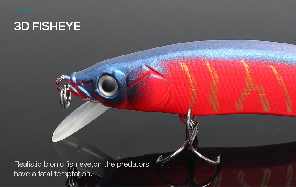 1. Мини воблер Minnow: 3D реалистичные глаза, высокое разрешение деталей корпуса, 2 сильных и острых тройных крючка.