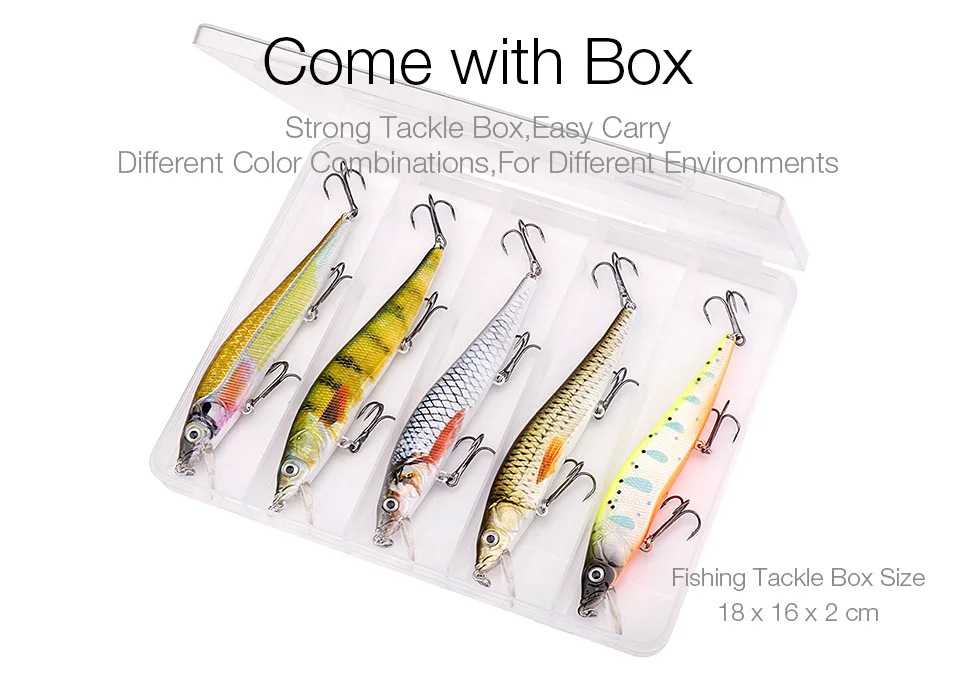 4. Этот гольян наживляет рыбу в верхней воде, в том числе окуня, Walleye, красная рыба, форель в крапинку и т. Д. Они отличаются яркими цветами, двойными антикоррозийными крючками, разъемным кольцом из нержавеющей стали и имитацией рыбьей чешуи.