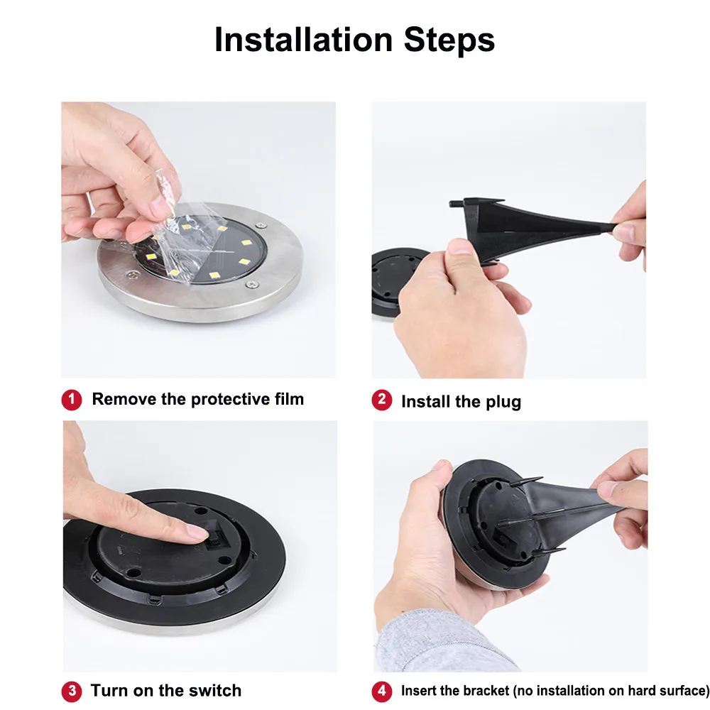 Светодиодный солнечный наземный светильник на солнечной батарее похоронены светильник на открытом воздухе Водонепроницаемый IP65 Нержавеющая сталь для украшения путь Лестницы парк садовый светильник
