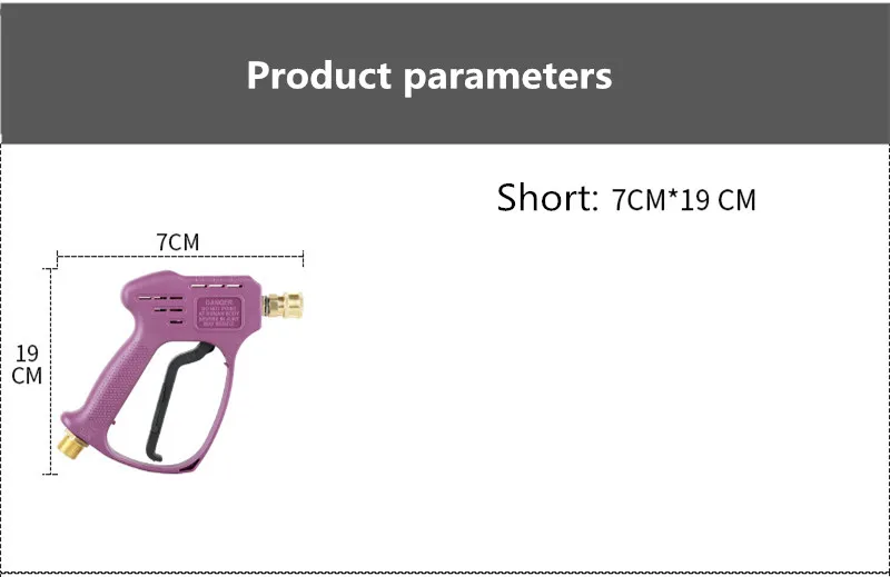 1. 350 кг сопротивление давлению, высокое давление легче чистить 2. Медный интерфейс для снижения уровня утечки воды 3. Съемная головка пистолета, проста в использовании 4. Высококачественный утолщенный корпус, износостойкий и не легко повредить 5. Брызги воды можно отрегулировать, и форма воды может быть отрегулирована по желанию 6, 1/4 живое соединение Быстроразъемное гнездо, удобное и быстрое соединение, замена в любое время 7. Утолщенный медный интерфейс делает соединение более прочным 8. Безопасная Пряжка, удобная ручка