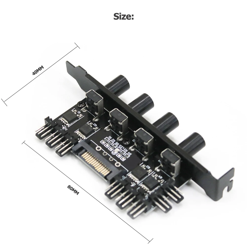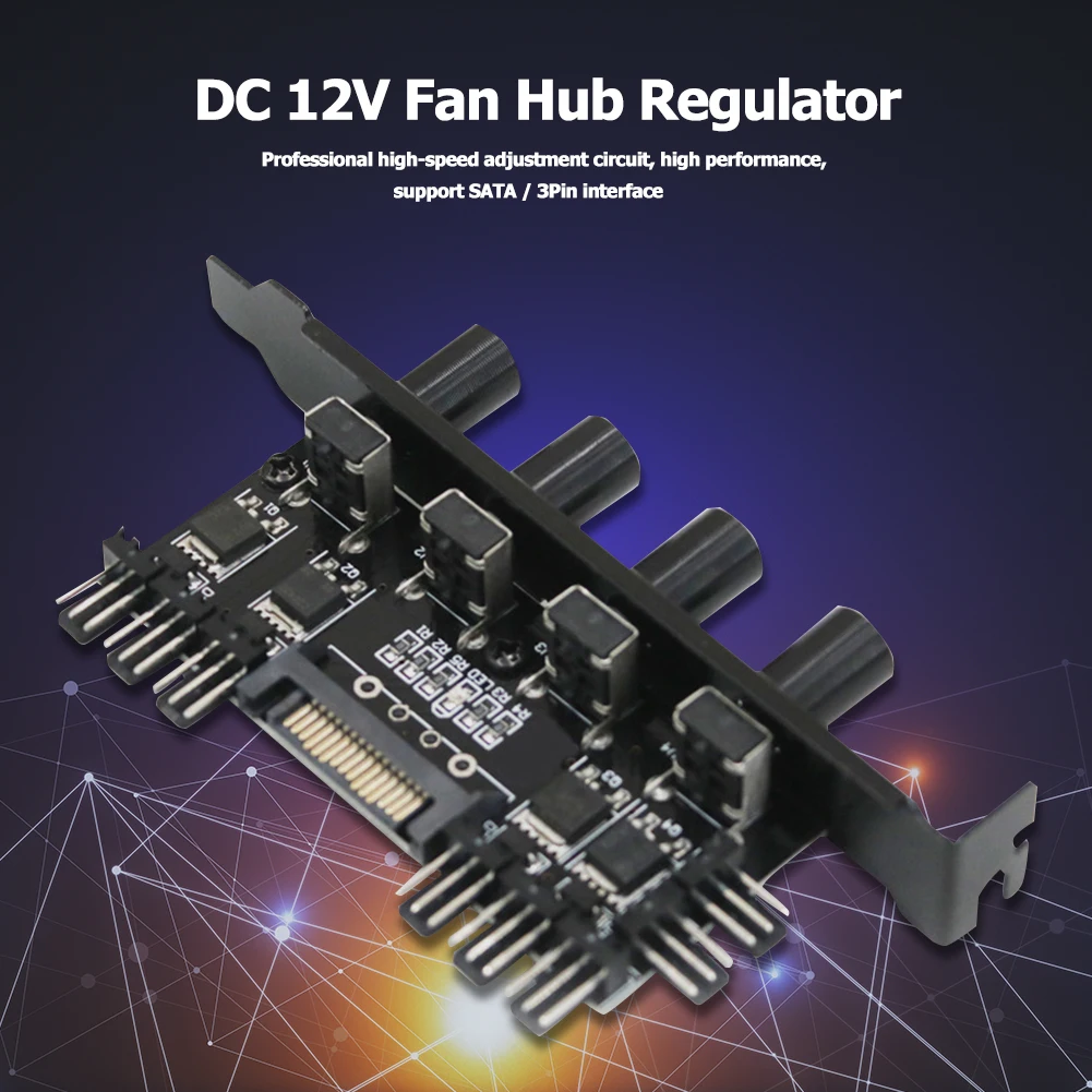 Регулятор ступицы вентилятора постоянного тока 12 В 8 способов 4 ручки SATA/3Pin регулятор скорости для компьютера ПК чехолОсобенности: Изготовлен из высококачественных материалов, прочный, прочный и стабильный для нашего использования. Профессиональная высокоскоростная схема регулировки, высокая производительность, поддержка интерфейса SATA / 3Pin. Этот охлаждающий вентилятор оснащен независимым контроллером скорости для регулировки. Спецификация: Напряжение источника питания: 12 В постоянного тока Тип интерфейса: SATA / 3pin Материал: металл Цвет: черный Размер: 80X40X30 мм/3,15X1,57X1,18" Примечания: 1. Из-за различных эффектов монитора и светильник фактический цвет изделия может значительно отличаться от цвета, показанного на фотографиях. Спасибо! 2. Возможны отклонения в 1-3 мм вследствие измерений вручную.