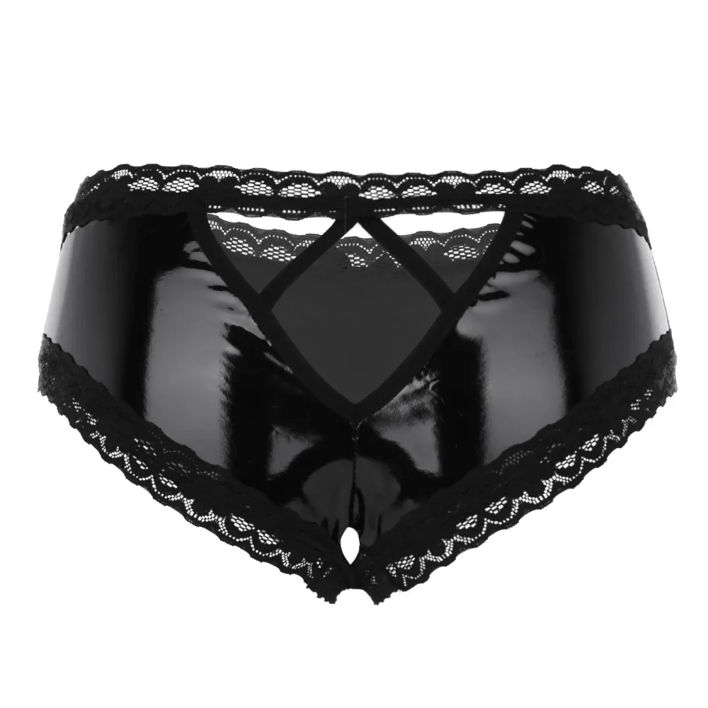 Женские трусы из лакированной кожи Wet Look, нижнее белье, застежка-утяжка.
