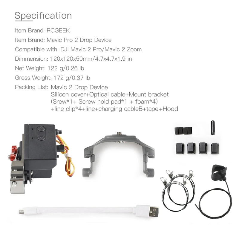 Для Mavic Pro Airdrop предназначен для того, чтобы обеспечить светильник весом и простым в использовании. Это позволяет вам уронить что-либо (не превышает максимальный вес нагрузки), который вы хотите от вашего дрона и в любом диапазоне ваш Дрон может достичь.