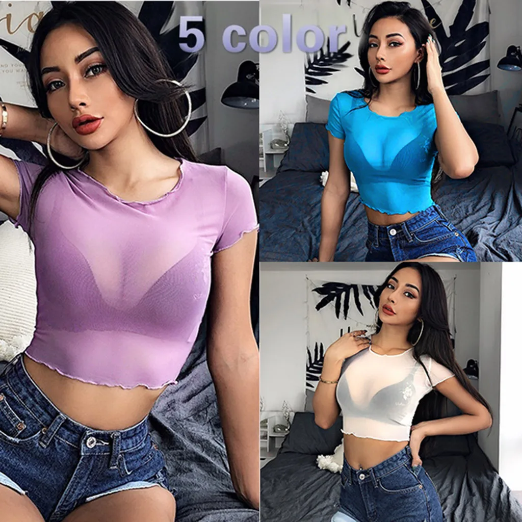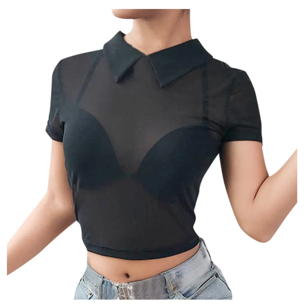 2. Женская модная Укороченная рубашка для взрослых, облегающая и Просвечивающая конструкция.