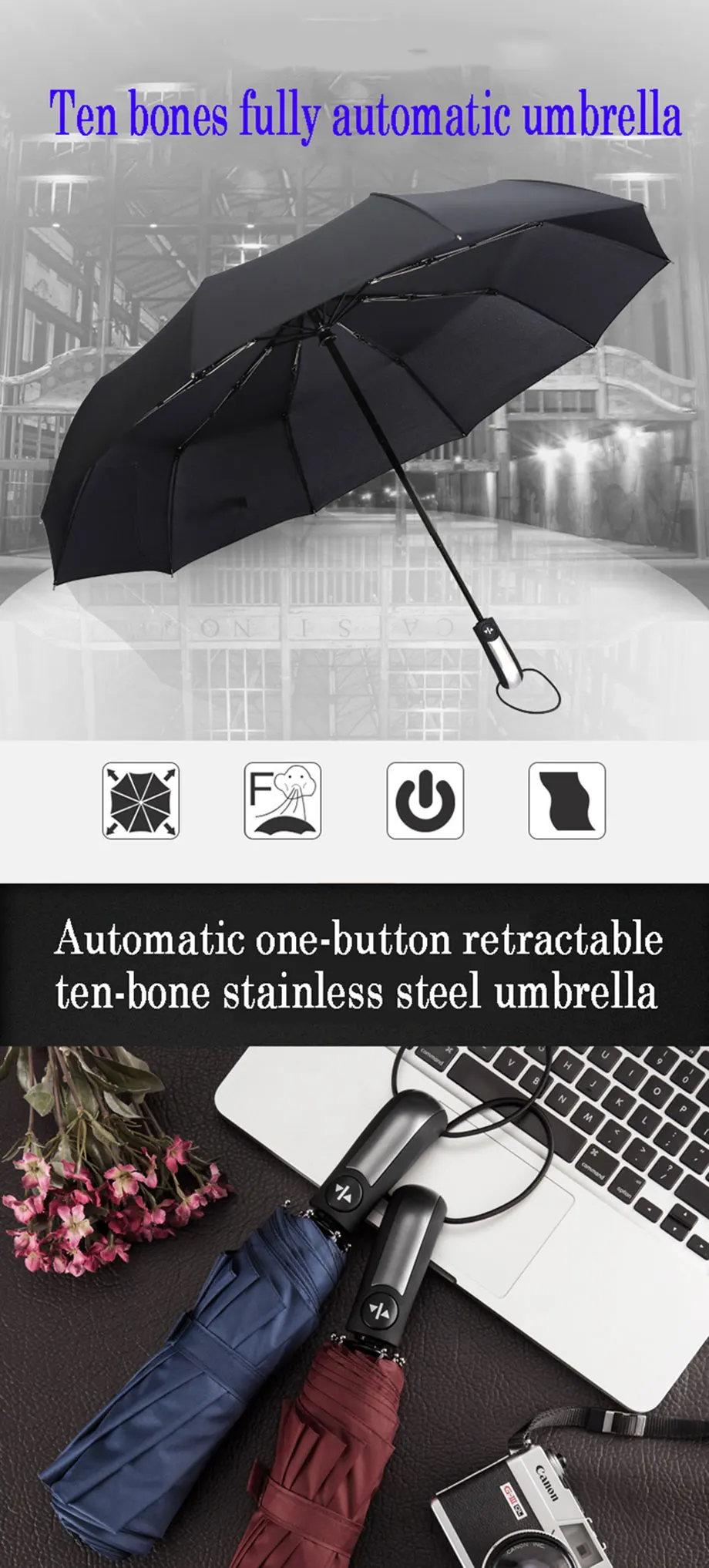 Мы тщательно проверим каждый товар перед отправкой. Гарантия качества! Для всех моих дорогих клиентов. Мы отправляем товар во все регионы мира. Если вас нет в списке стран доставки, пожалуйста, сначала свяжитесь с нами. Транспортировка и время могут отличаться 1. Вес: 445 г 2. Открытый Размер: 105 см, подходит для 1-2 человек 3. Открытая Высота: 66 см 4. Закрытый Размер: 34x6x6 см 5,10 спиц. Стекловолокно, защита от ветра. 6,190 T Pongee одежда 7. Полностью автоматический 8. Лучшее для водонепроницаемости 9. Материал каркаса: черная сталь Автоматический открытый зонтик обеспечивает быструю и удобную защиту от погодных условий для непогоды в дождливые и влажные дни. Зонт идеально подходит для погружения в сумку, автомобиль или портфель для мгновенной защиты от дождя. Оправа обладает повышенной прочностью благодаря большому навесу, а ручка обеспечивает гладкий и надежный захват. Дорогие друзья, мы являемся производителем, который производит различные зонты, поддерживает изготовление на заказ, печать логотипа, большое количество, цена может быть согласована, спасибо за ваше покровительство.