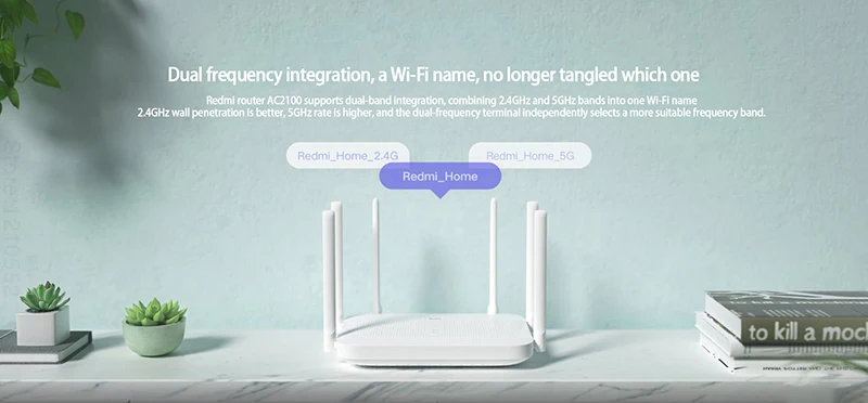 Redmi маршрутизатор AC2100 поддерживает двухполосный интеграции, сочетая 2,4 ГГц и 5 ГГц Частотные диапазоны в беспроводного доступа в Интернет Wi-Fi. 2,4 ГГц стену лучше и Wi-Fi 5 ГГц скорость выше.