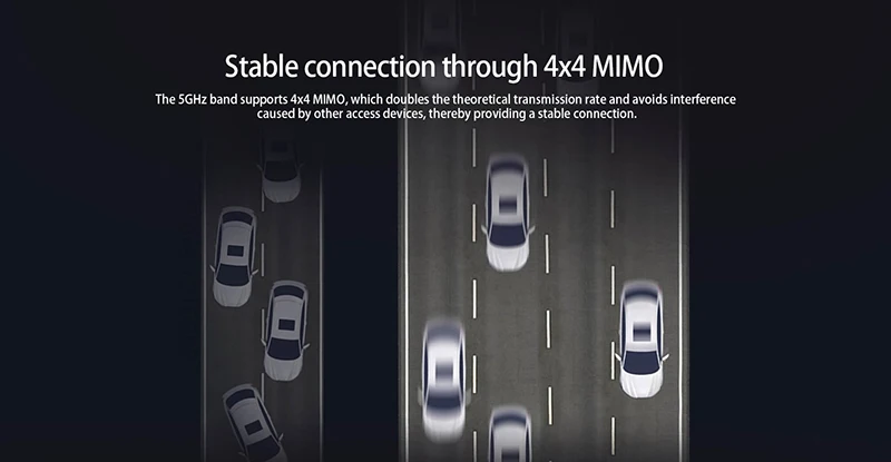 Полоса 5 ГГц поддерживает 4x4 MIMO, которая удваивает теоретическую скорость передачи и предотвращает помехи, вызванные другими устройствами доступа, тем самым обеспечивая стабильное соединение.![]()