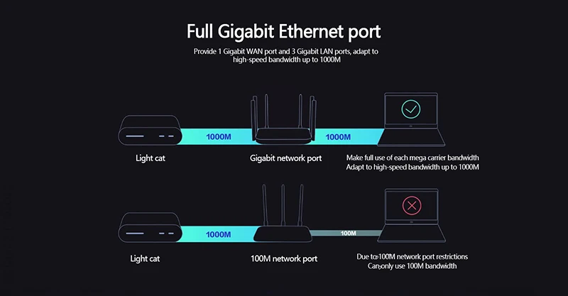 Обеспечивает 1 гигабитный порт WAN и 3 гигабитных порта LAN, адаптируется к высокоскоростной пропускной способности до 1000 м![]()