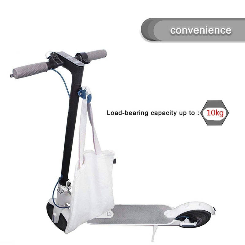 Мощная несущая грузоподъемность до 10 кг, можно повесить шлем, сумку для покупок, сумочку, портфель, легко носить с собой некоторые предметы багажа, освободите свою руку, чтобы вы были более удобны и безопасны для скутера Xiaomi Mijia M365