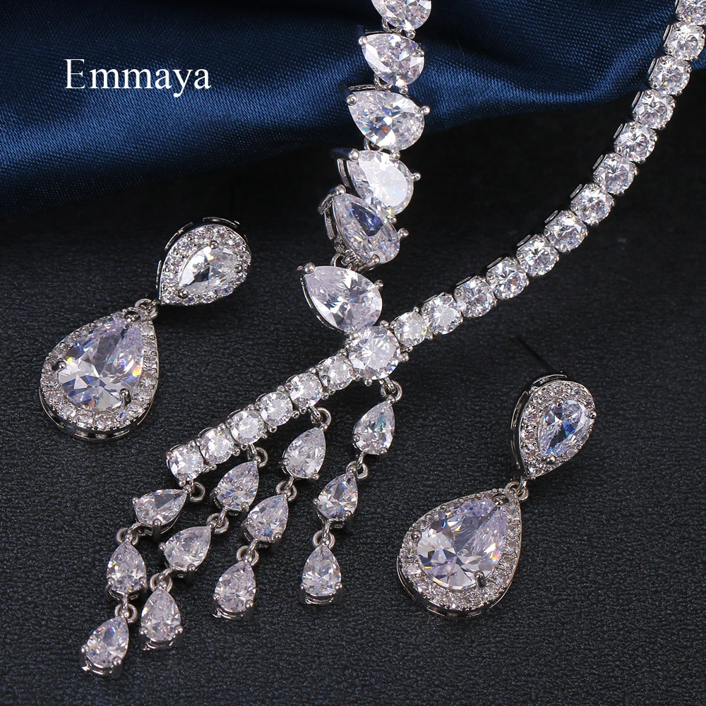 Emmaya Новая мода гениальный дизайн перекрытие внешний вид кубического циркония ожерелье и серьги нежные ювелирные изделия Fmelae в банкете