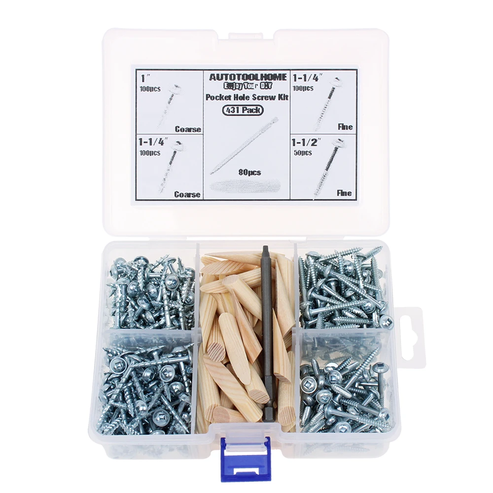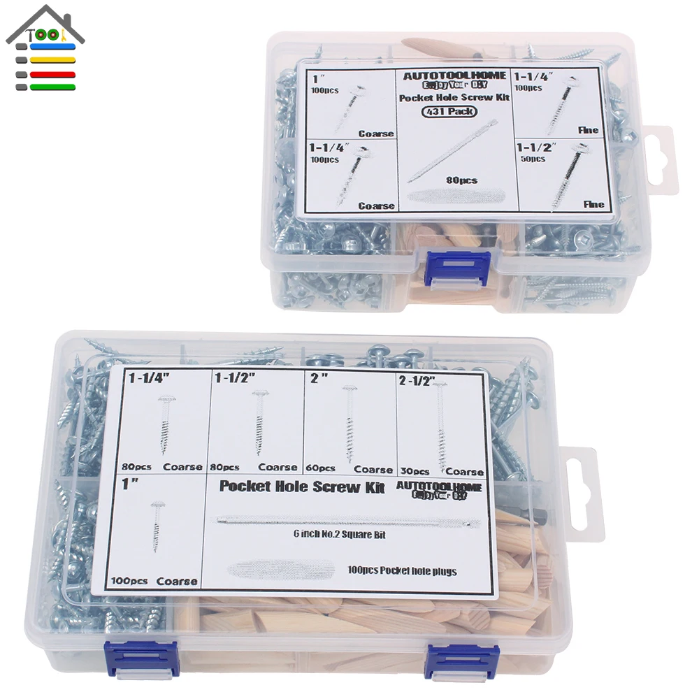 Карманные винты для отверстий набор пробок с цинковым покрытием мелкая и крупная расческа Резьбовая шайба деревянные винты для карманного отверстия джиг 431 шт/451 шт