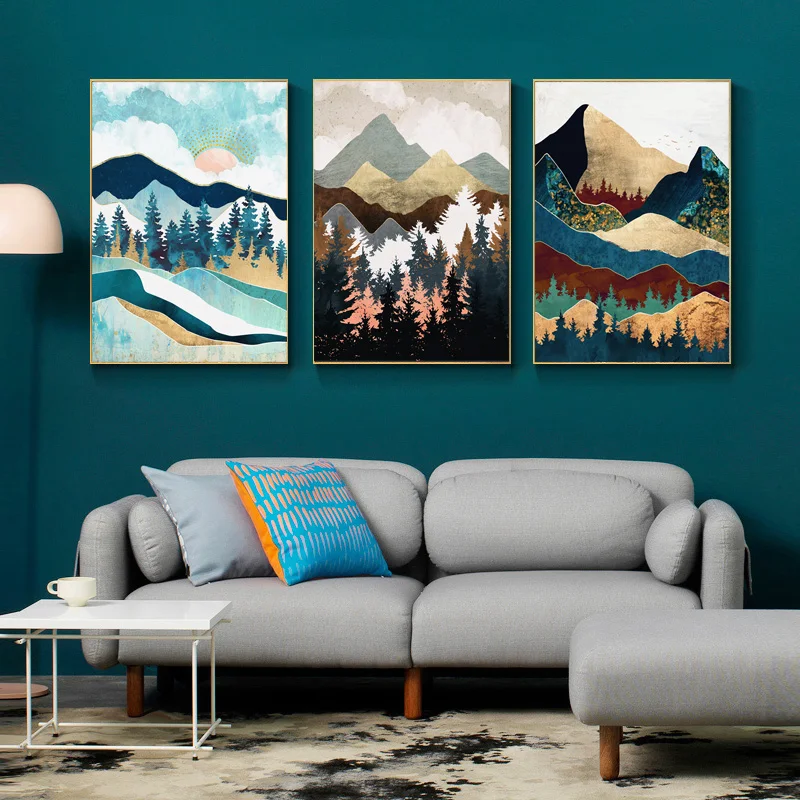 Абстрактный пейзаж горный лес настенная живопись холст скандинавские постеры и принты настенные картины для декора гостиной
