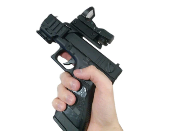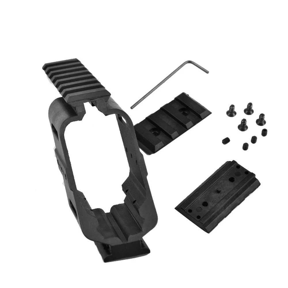 Особенности: Материал: высококачественный пластик Тип рельса: 7/8 "20 мм Пикатинни/Вивер Quad rail: верхний рельс с 7 слотами, другой рельс с 3 слотами Отделка: матовый черный Вес нетто: 54 г Длина крепления: 12 см Длина верхней рейки: 8 см Длина бокового рельса: 4 см Вниз рельсы длиной: 3,5 см Подходит для: s & w/1911/Glocks серии/Walther p22/HKp30/SD9VE 9 мм и т. д.