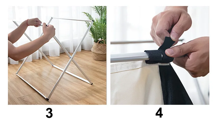 4. Поместите чехол из ткани Оксфорд в алюминиевую раму X, закрепите его на липучке и установите.