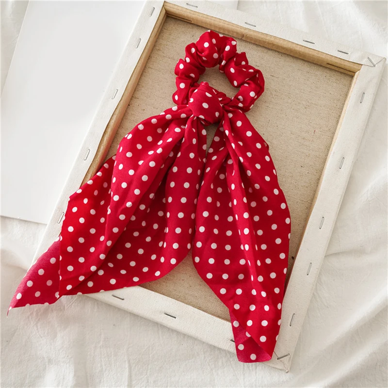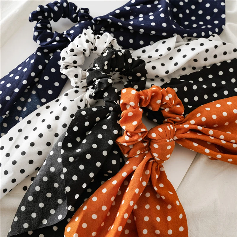 Эластичная резинка для волос с узорами в горошек и бантом