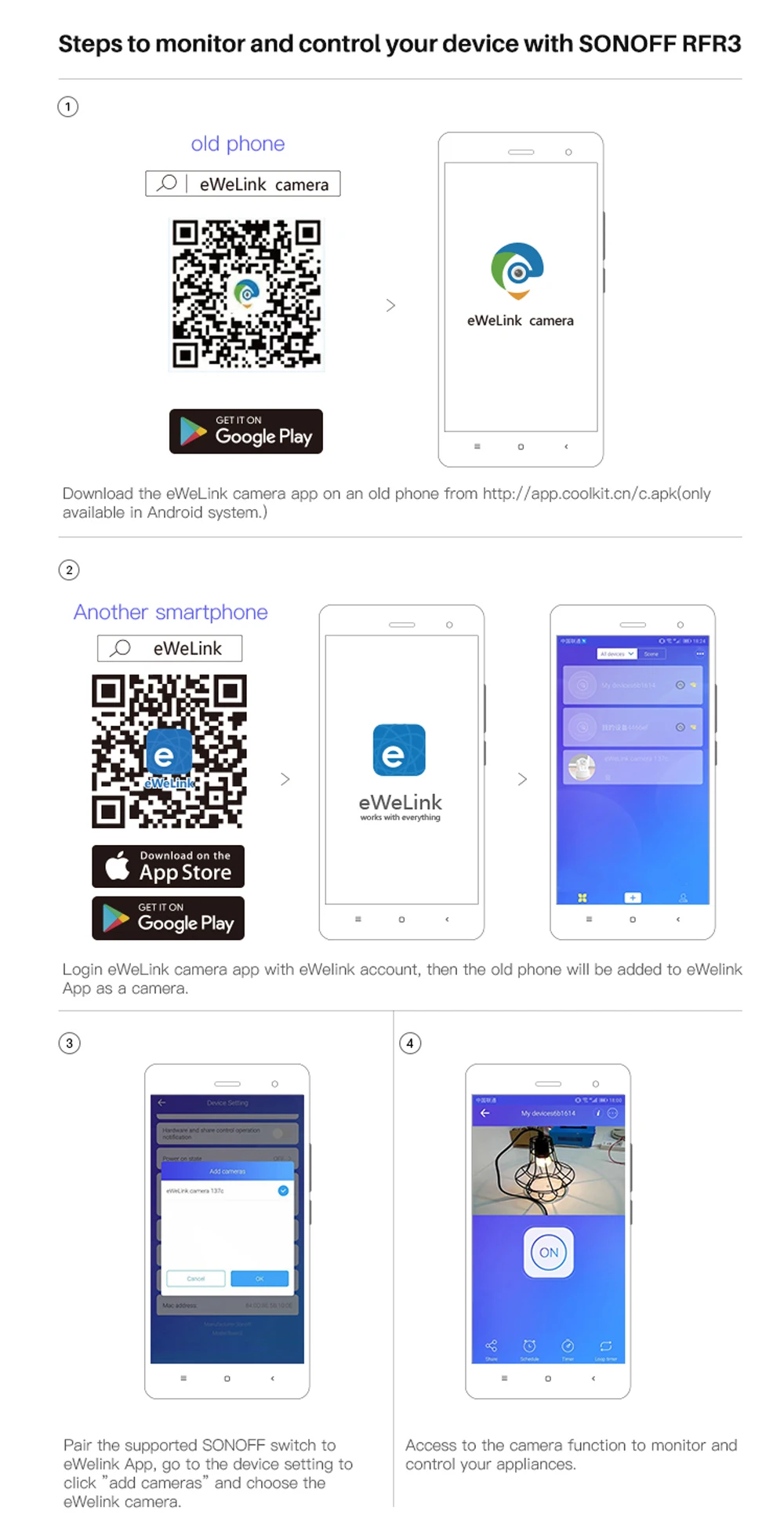 Подключите старый телефон к приложению eWeLink, чтобы он действовал как камера, Удобно контролировать и управлять вашими приборами с помощью SONOFF RFR3