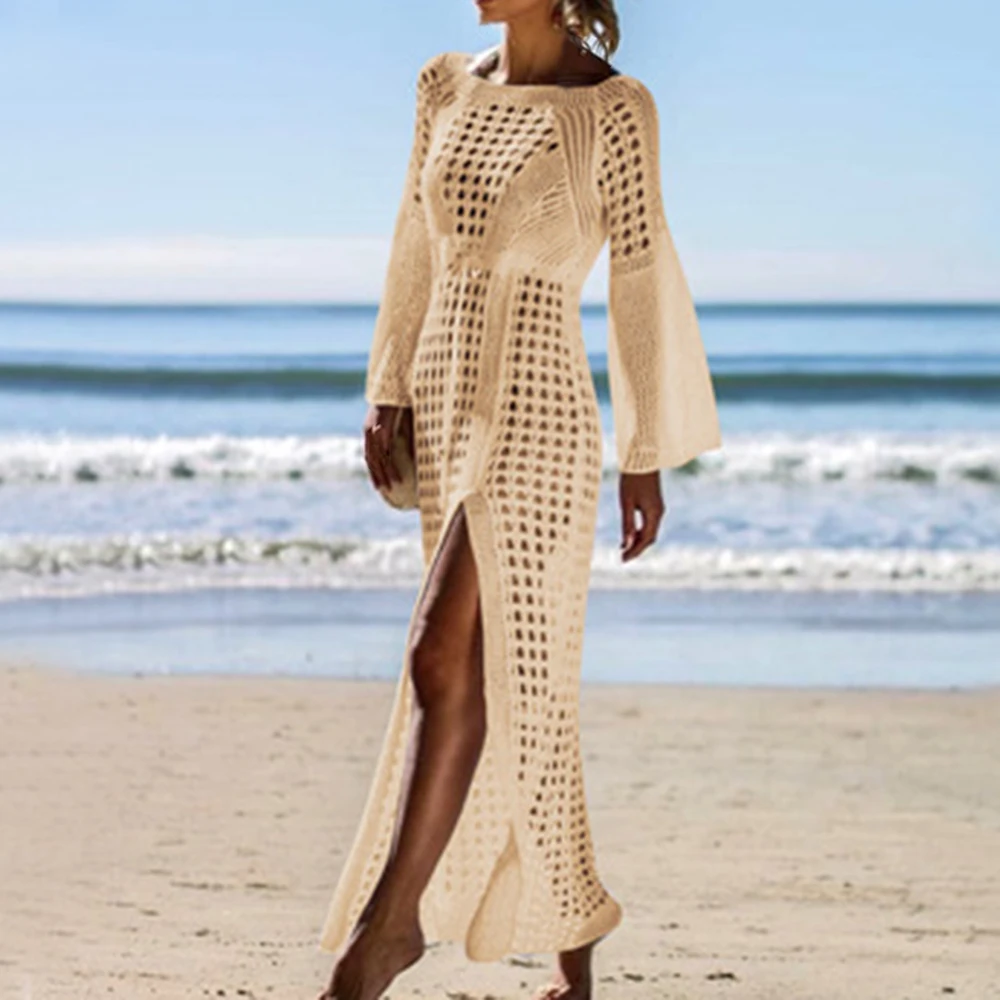 Женское пляжное шифоновое платье макси в стиле бохо, с разрезом
