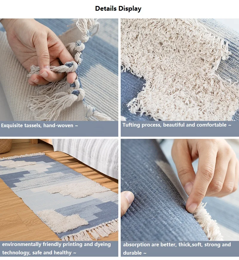 Материал: хлопок/полиэстер Ремесло: ручная работа Дизайн: коврик с кисточками градиентного цвета Особенности: винтажный дизайн, противоскользящий, дышащий хлопок, сильное поглощение воды, машинная стирка, легкий уход Размер: 60*90 см, 60*130 см Цвет: как на картинке Для: гостиной, спальни, кухни, ванной комнаты, столовой, кабинета, дивана и так далее. Совет: 1. Ручное измерение будет 3 см отклонение, это нормальный диапазон. 2. Можно использовать с резиновыми нескользящими ковриками, доступны в нашем магазине! 3. Если вам нужны другие размеры, пожалуйста, свяжитесь с нами напрямую, мы предоставим вам ссылку на товар!