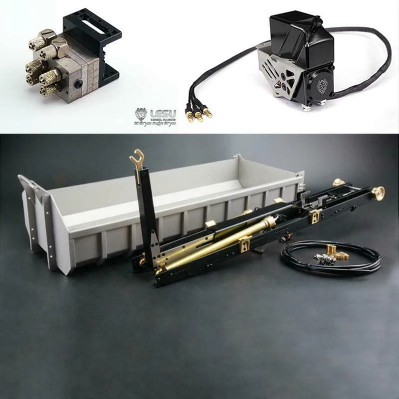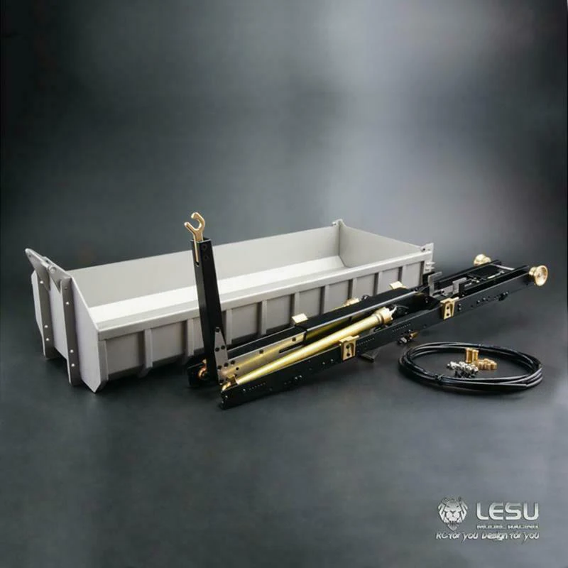 Спецификация: Бренд: LESU Весы: 1:14 Материал: нержавеющая сталь, латунь, алюминиевый сплав Размер автомобильного хоппера: 50*19,5*6,8 см ID: 20160901-D Посылка-лист: Металлический автомобильный Хоппер Гидравлический цилиндр Клапан с клапаном Насос для насоса