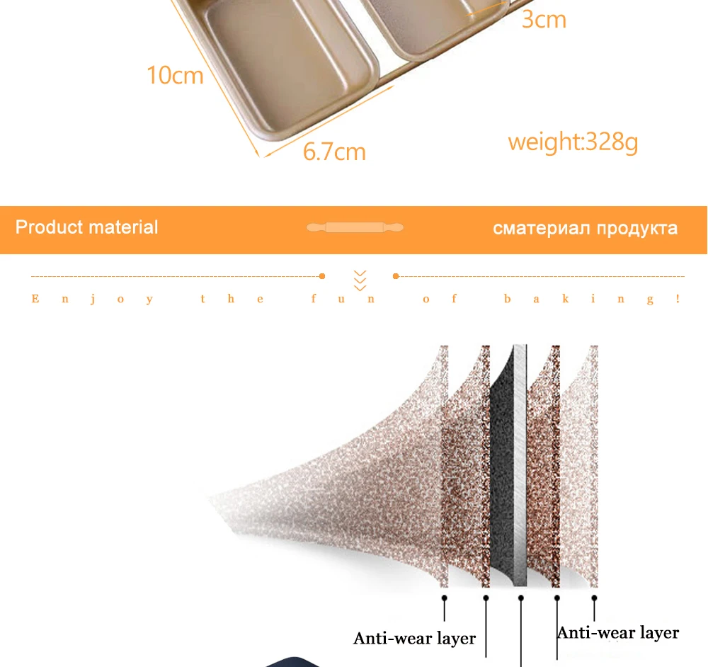 Pan dimensions: 8.58x8.27inch(21.8x21cm); Cavity size: 3.94x2.64inch(10x6.7cm)