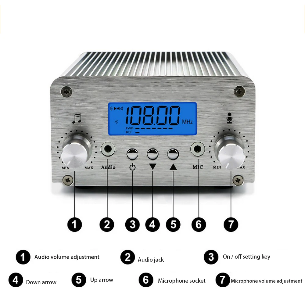 -Этот передатчик может работать с любым большим fm-устройством; Например, fm-радио; Fm-динамик; Поэтому он подходит в большой церкви для трансляции музыки на несколько наружное радио fm радио fm-радио