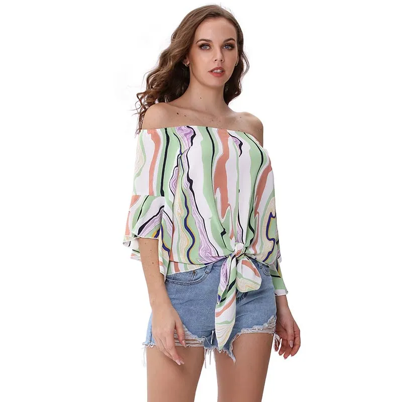 Женская шифоновая блузка в горошек офисная с длинным рукавом и отложным
