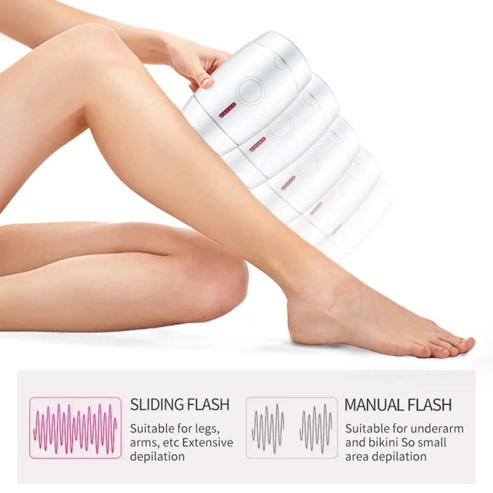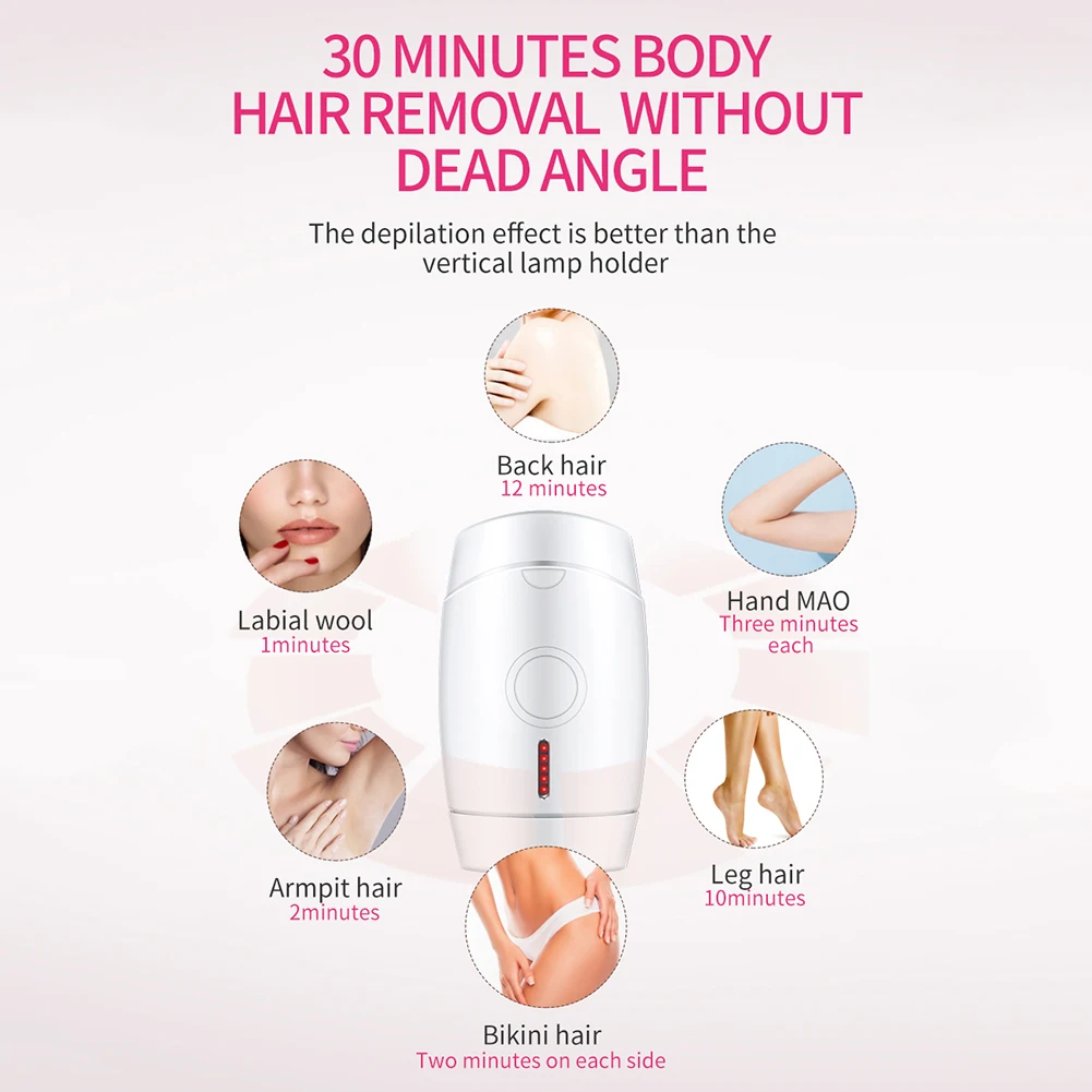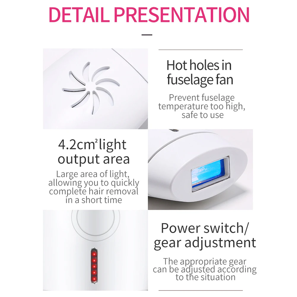 * 3. 8 миллионов мигающего объема. Используется Интервальная вспышка и непрерывная вспышка, два режима работы, которые подходят для удаления волос на небольших участках (лицо, бикини, подмышки) и больших областях (ноги, руки, спина).