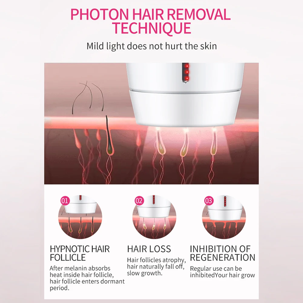 * 2. Облучите меланин волосяного фолликула, чтобы замедлить рост волос от корня. Облучение в соответствии с циклом роста может достичь эффекта длительной шелковистости.