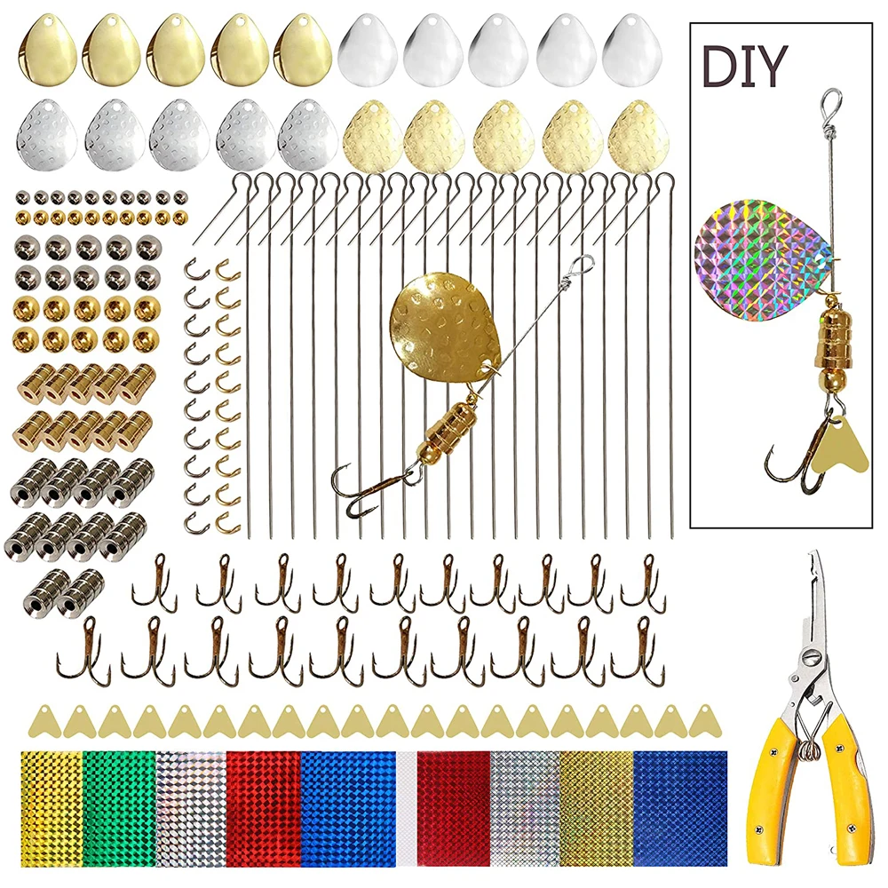 Продукт Особенности: --- Высокое качество --- все снасти изготовлены из высококачественного материала. Высокоуглеродистая сталь тройные Крючки и голографические клейкие наклейки, чрезвычайно прочные и надежные. Надежность, долговечность и прочность --- Легко вращается --- легко вращается, либо на проволоке, либо из плетеной нержавеющей стали. Отличный компонент для прикрепления спиннинга к рыболовной установке --- Использование --- отлично подходит для изготовления блеснов форели, встроенных блеснов для басов, стальных головок, лосося и различных типов наживок --- DIY удовольствие --- Рыболовный набор полностью удовлетворяет потребности любителей рыбалки, идеально подходит для рыболовов, ремесел, этот продукт должен быть для любого рыбака Комплектация включает в себя: 20 штук блесна лезвия 20 штук тройными крючками 20 штук проволока вала 20 штук Clevises 20 штук приманки органов Для выведения токсинов, 40 шт Бусины 1 шт. рыболовные плоскогубцы 20 шт. пластиковый лист в форме сердца 10 шт. Голографическая клейкая пленка Упаковка: 171 шт. аксессуары для рыболовных приманок комплект в коробке