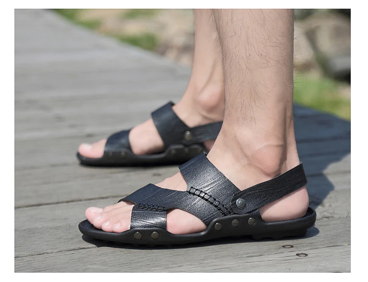 2020 черные кожаные мужские сандалии летние пляжные домашние Тапочки Удобная прогулочная мужская повседневная обувь мягкие сандалии мужские сандалии Hombre 46
