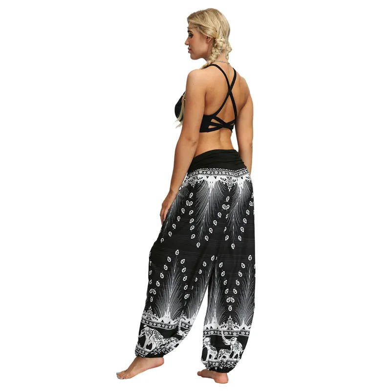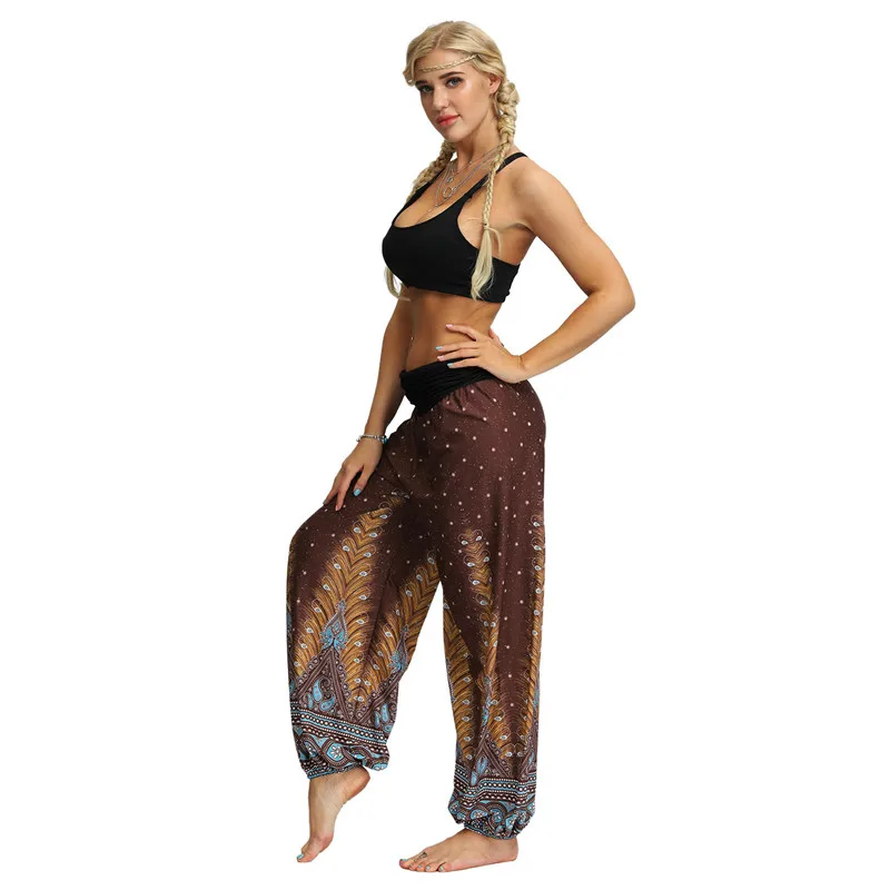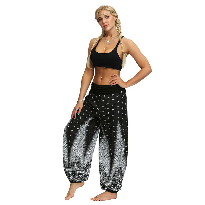 Женские спортивные штаны-шаровары с высокой талией, длинные штаны, повседневные Модные уличные свободные брюки с принтом перьев, хиппи, богемные брюки бохо