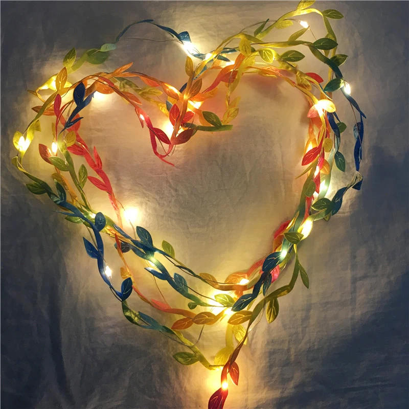 Искусственная красочная гирлянда с листьями, медная проволока, 2 м, 3 м, 5 м, 10 м, светодиодный светильник, гибкий праздничный светильник для свадьбы, Рождественский светильник