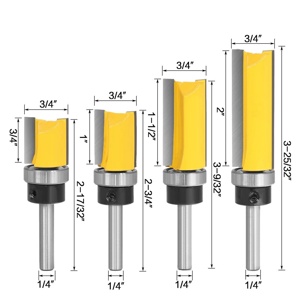 1 шт 6 мм 1/4 дюйма, хвостовая фреза с Концевая Пазовая фреза Рисунок немного верхней и нижней подшипник 3/4 "лезвие шаблон древесины фрезы плотника