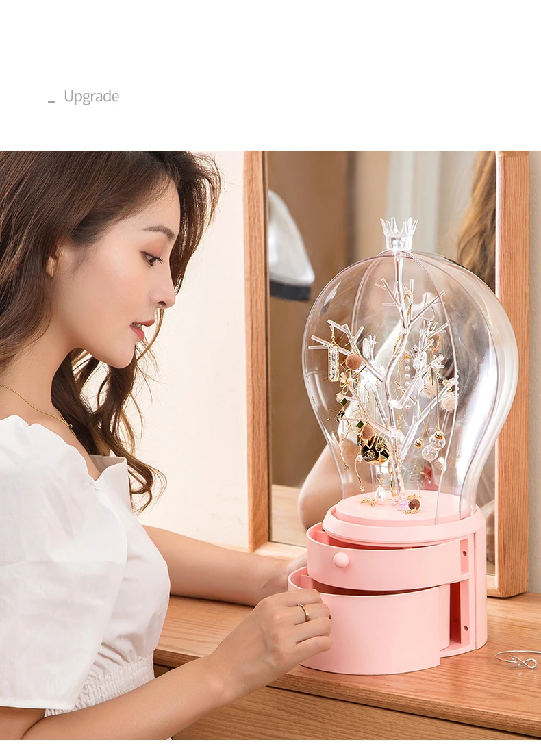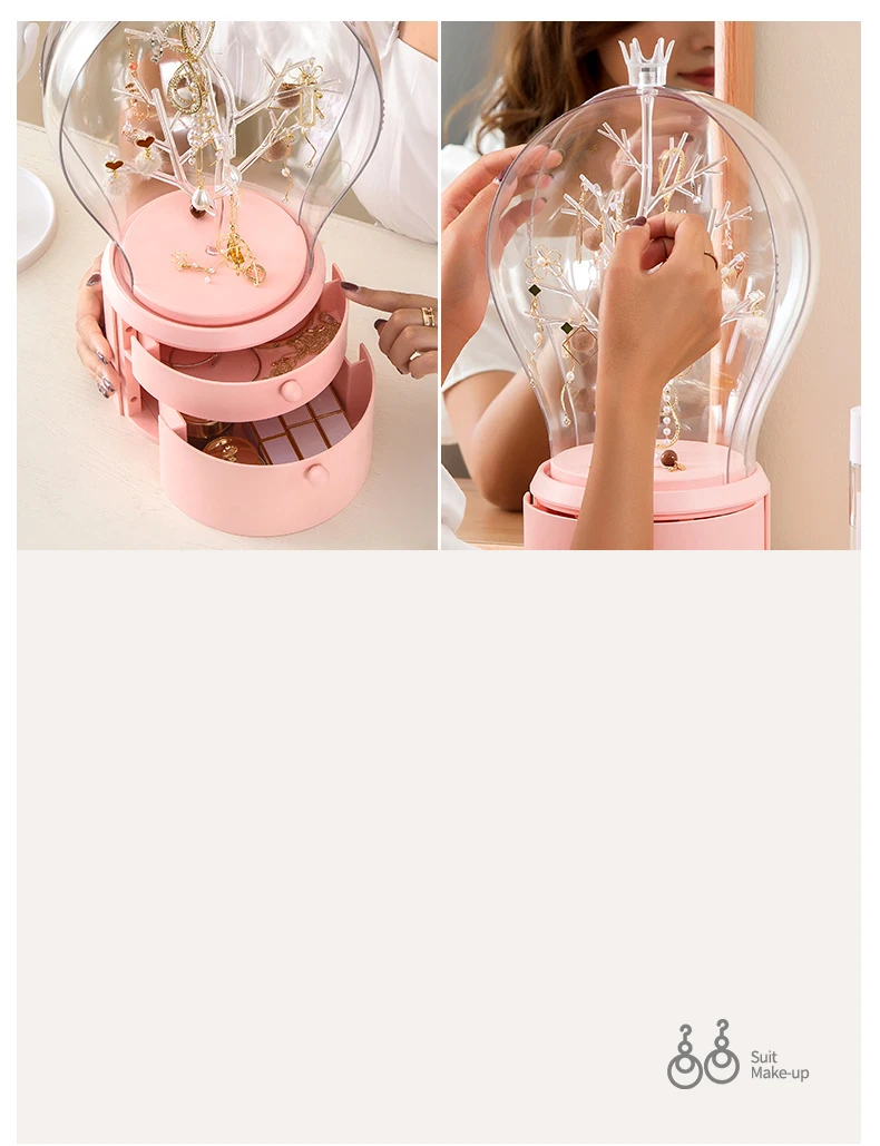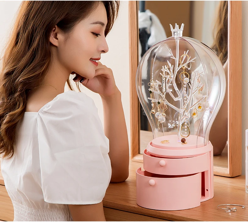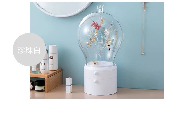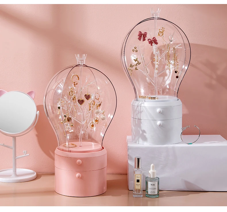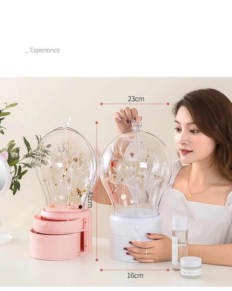 Это очень креативная шкатулка для хранения ювелирных изделий, стильная Прозрачная форма лампы, креативное вращение на 360 градусов, легко хранить товары, Есть два способа подсветки, usb-соединение и два No. 5 батарей, позволяют использовать более удобные двухцветные огни, свободно регулировать, хранить ювелирные изделия в первую очередь, лучший выбор подарка, Отправить друзей, любовь, хорошие продукты, которые вы заслуживаете