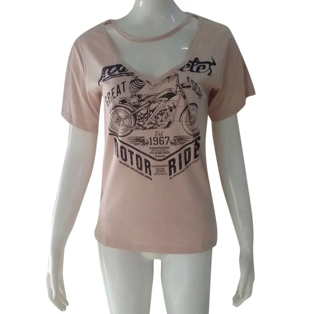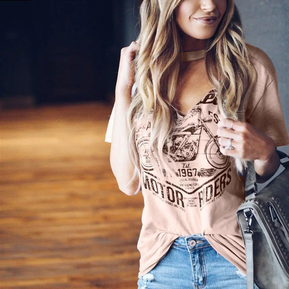 Женская женская блузка с коротким рукавом и v-образным вырезом, Стильные топы с принтом, футболки