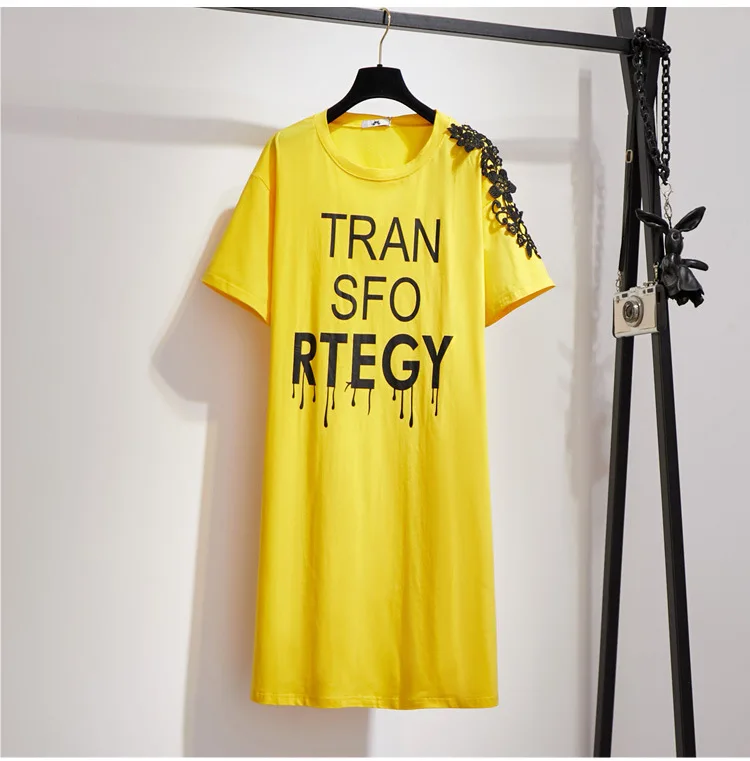 Модные женские хлопковые футболки с короткими рукавами размера плюс, летние платья