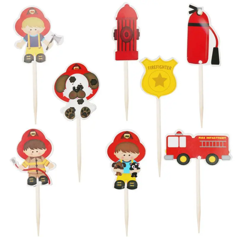 20 комплектов, топпер для торта с изображением пожарного, для детского душа, классная тема для Пожарника, украшения для дня рождения, украшения для кексов