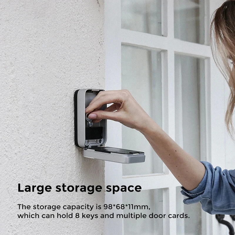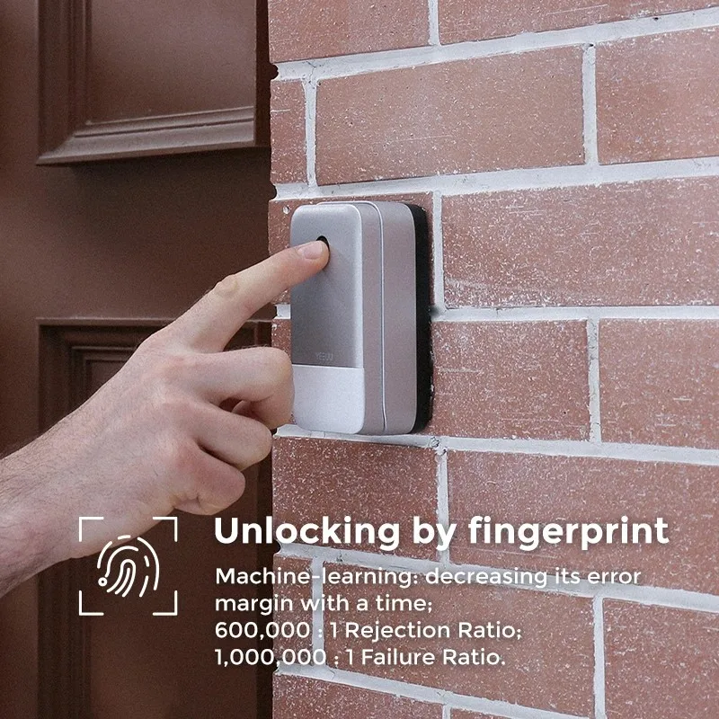 Блокировочная коробка K1-это надежный план резервного копирования. Единственное, что вам нужно сделать, это поместить ключ или карту в коробку, затем установить отпечаток пальца, пароль для себя, членов семьи или друзей, вы никогда больше не будете заперты. YEEUU предоставляет вам еще один быстрый и безопасный доступ к вашему дому.