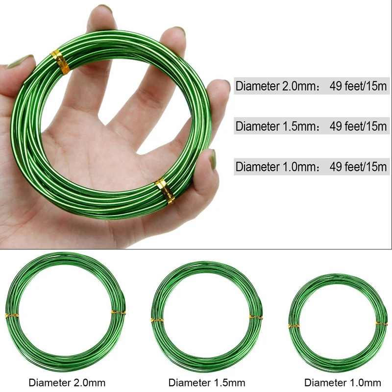 9 рулонов бонсай провода анодированный алюминиевый бонсай тренировочный провод с 3 размерами (1,0 мм, 1,5 мм, 2,0 мм), всего 147 футов (зеленый)