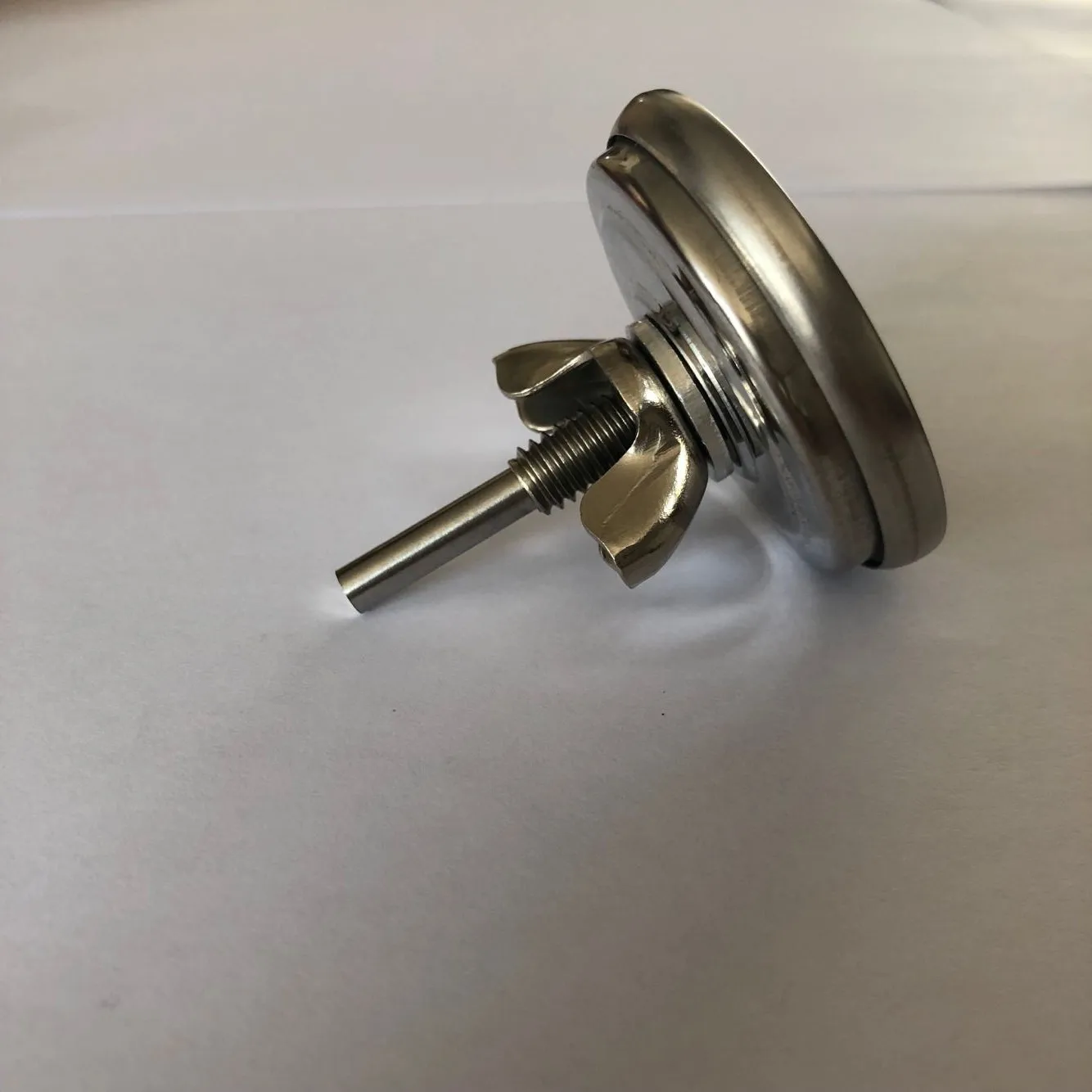 Это нержавеющая сталь и очень легко установить, так как вы просто вставляете стебель через отверстие на вашей яме/курильщике/гриле, а затем Прикрепите гайку, которая входит в комплект.