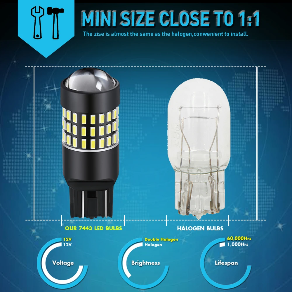 1. Работает для DRL, дневных ходовых огней, поворотов, резервных задних огней, хвостовые лампы, стоп-сигналы и т. д. 2. Высокая мощность 3014 Светодиодный чип, который обеспечит идеальный Рисунок луча, высокий светильник, низкое энергопотребление. 3. Европейское и новейшее транспортное средство, оснащенное системой CAN-BUS, может потребовать Нагрузочных резисторов, чтобы обойти коды ошибок/проблему мерцания, когда невысокий, как сигнал поворота и стоп-сигналы.