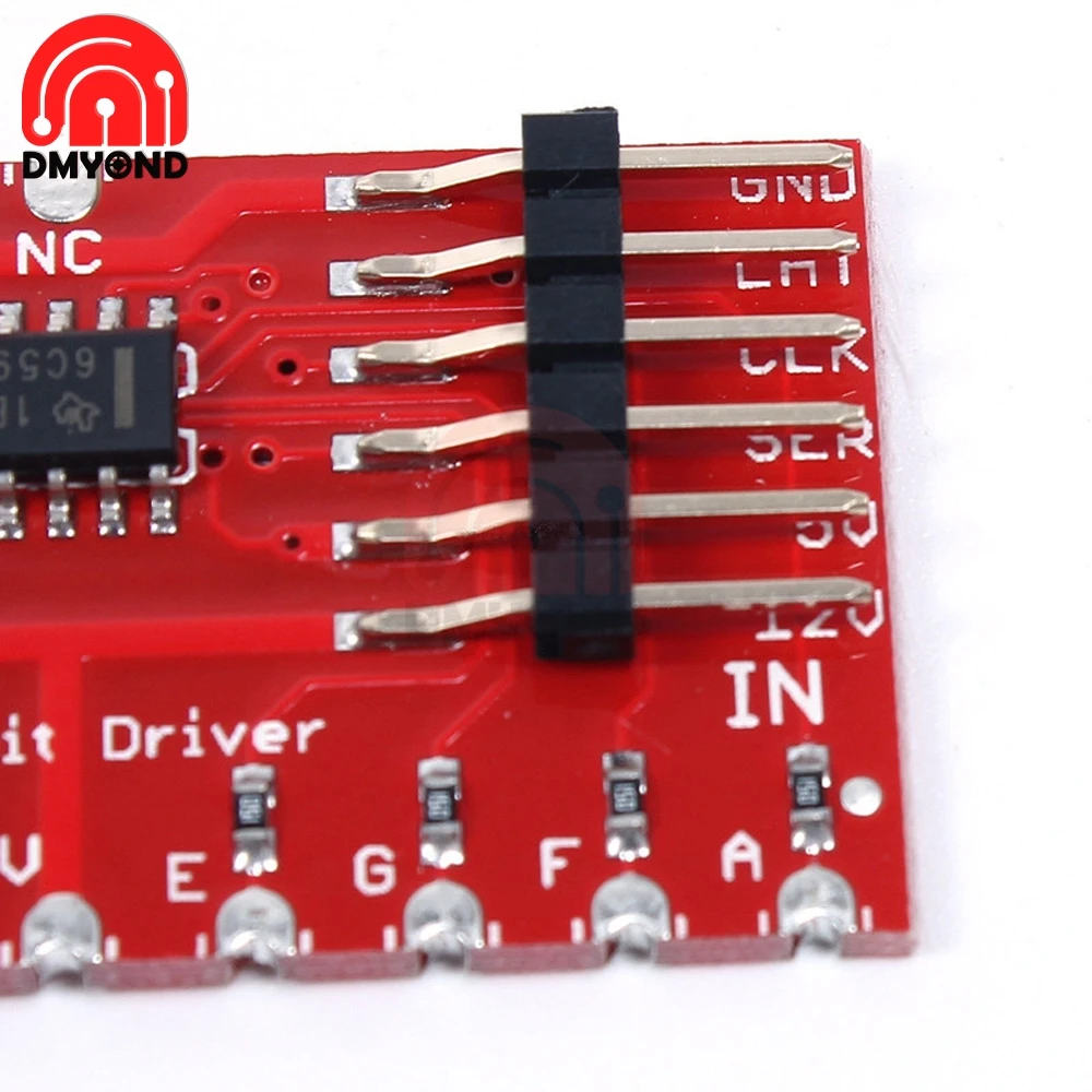 MCU цифровой драйвер может быть легко подключен к задней части 7-ми сегментный дисплей пайкой все 10-контактный фазаны на нижней части материнской платы, А также две дополнительные кастеляции сверху. Имейте в виду, что большие цифровые драйверы требуют как светодиодов 12 В, так и 5 В на борту TPIC6C596 IC. Каждый драйвер оснащен шестью входными контактами и шестью выходными контактами, которые позволяют соединять драйвер. Контакты ввода/вывода Перечислены как GND (земля), налог на добавленную стоимость (защелка), CLK (часы), SER (серийный), 5 В (источник питания для драйвера IC) 12 вольт постоянного тока (мощность составляет 7-в корпусе с двурядным расположением выходов). Время и множество больших битовых драйверов, которые мы действительно использовали, были отображены на нашей сцене AVC Battle Bot!