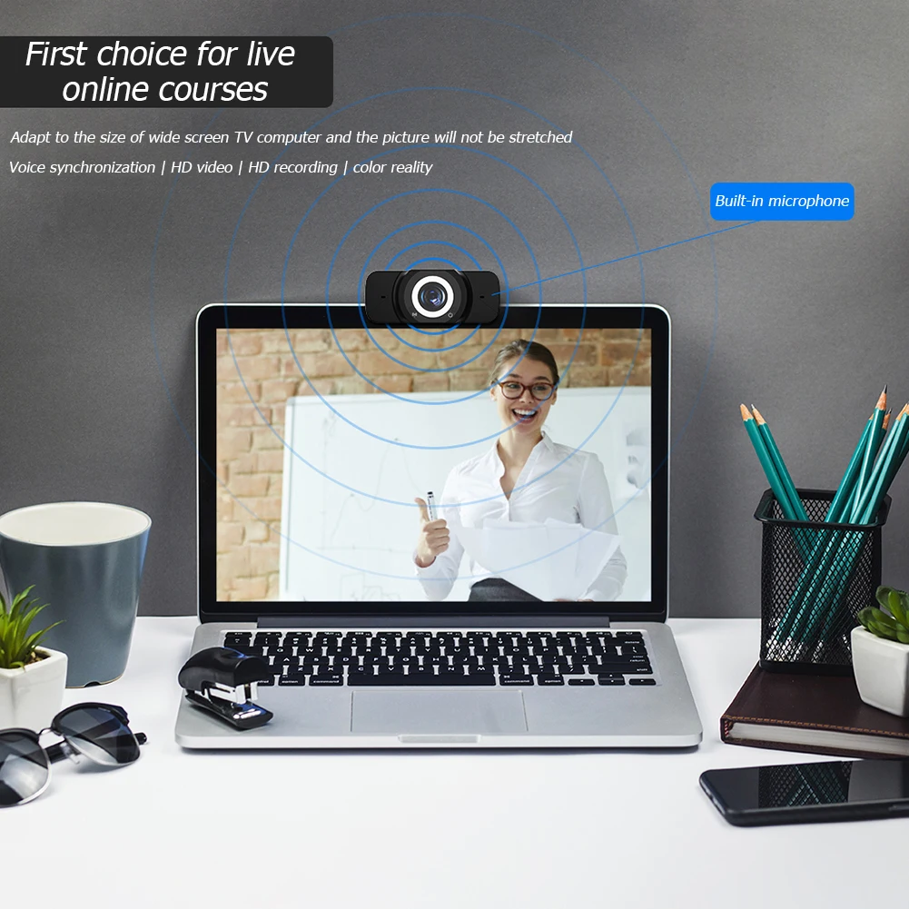 2MP Full HD 1080P Веб-камера с крышкой конфиденциальности Встроенный микрофон USB драйвер Бесплатная веб-камера для ПК компьютера