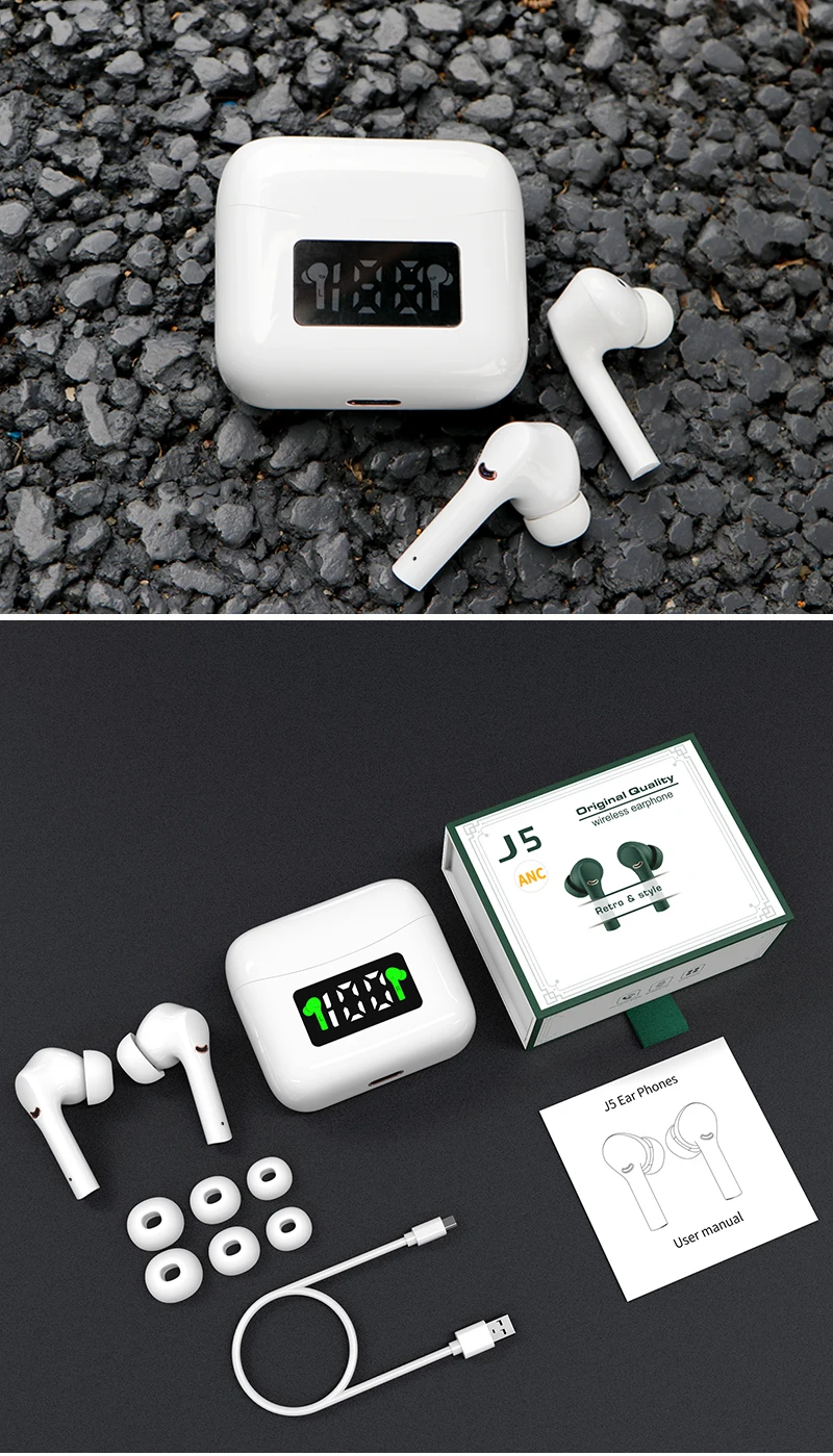 Tws-наушники ANC J5, спортивные беспроводные Bluetooth-наушники, стереонаушники, музыкальные наушники с сенсорным управлением и микрофоном